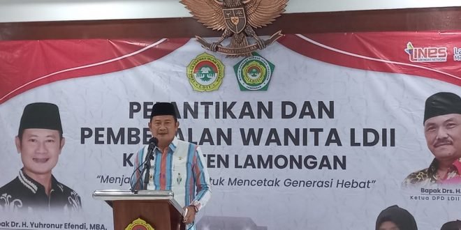LAMONGAN, Ketua DPD LDII Lamongan melantik pengurus Wanita LDII Lamongan pada Jumat (4/3). Pelantikan yang bertema “Menjadi Ibu Hebat untuk Mencetak Generasi Hebat” berlangsung di Gedung Sabha Dyaksa Pemkab Lamongan.