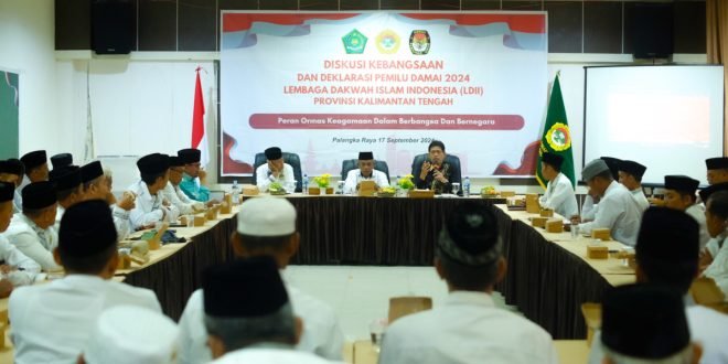Palangka Raya – Dewan Pimpinan Wilayah (DPW) Lembaga Dakwah Islam Indonesia (LDII) Kalimantan Tengah (Kalteng) menggelar kegiatan diskusi kebangsaan dan deklarasi Pemilu Damai 2024 dengan tema “Peran Ormas Kebangsaan dalam Berbangsa dan Bernegara.”
