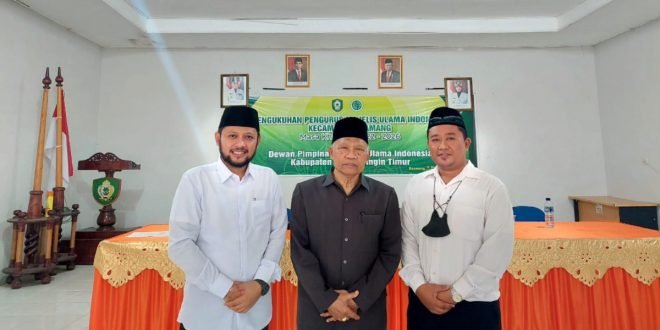 SAMPIT(6/9)– Ketua MUI Kabupaten Kotawaringin Timur Drs Amrullah Hadi secara resmi mengukuhkan pengurus MUI Kecamatan Baamang masa khidmat 2022-2026 di Aula Kantor Kecamatan Baamang pada Selasa (6/9).