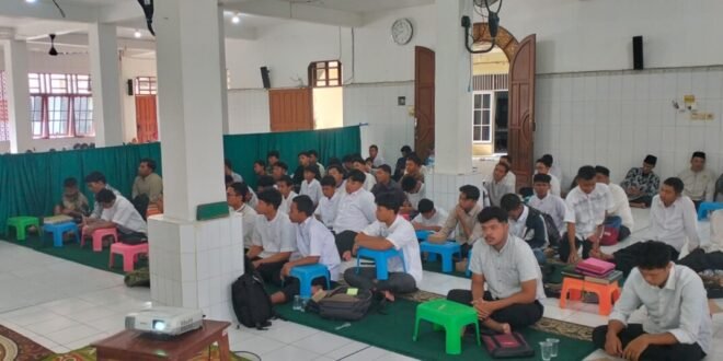 PALANGKA RAYA (24/8/2025)- Sedikitnya 200 generasi penerus (Generus) Lembaga Dakwah Islam Indonesia (LDII) Kota Palangka Raya mengikuti pelatihan dengan tema “Melalui Penguatan 29 Karakter Luhur untuk Menangkal Faham Intoleransi, Radikalisme, dan Terorisme Menuju Generasi Emas 2045”. Diselenggarakan di Masjid Jamiatul Amaliyah dengan menghadirkan narasumber dari Densus Anti-teror 88.