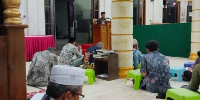 PALANGKA RAYA – Dalam rangka memperingati Hari Batik Nasional, pada Kamis malam (2/10/2025) warga Lembaga Dakwah Islam Indonesia (LDII) yang sebagian besar mengenakan busana Batik Nasional menghadiri pengajian rutin yang diselenggarakan oleh PC LDII Kecamatan Jekan Raya. Acara berlangsung di Masjid Al Munawaroh, Jalan Sakan Induk, Kota Palangka Raya.